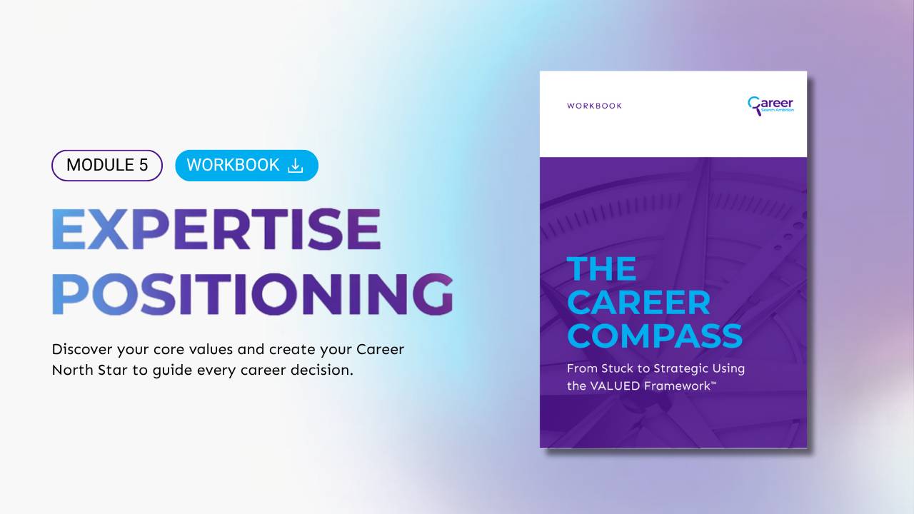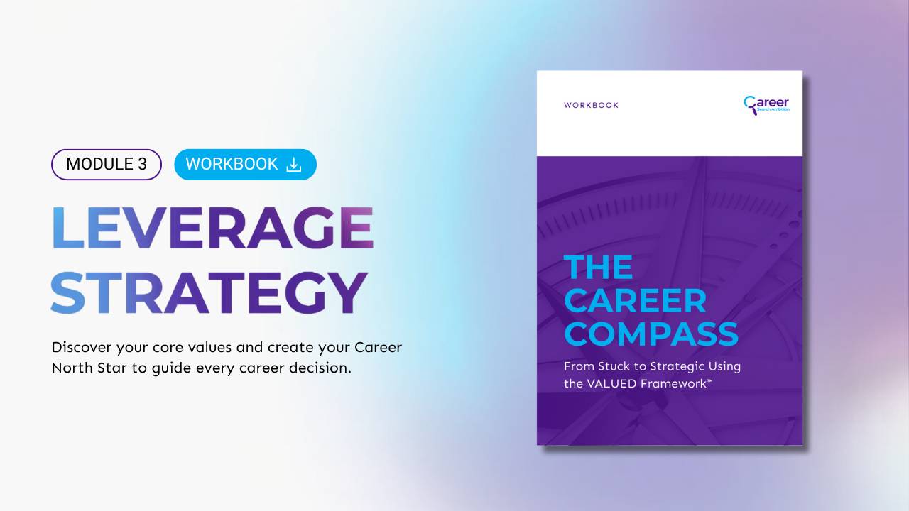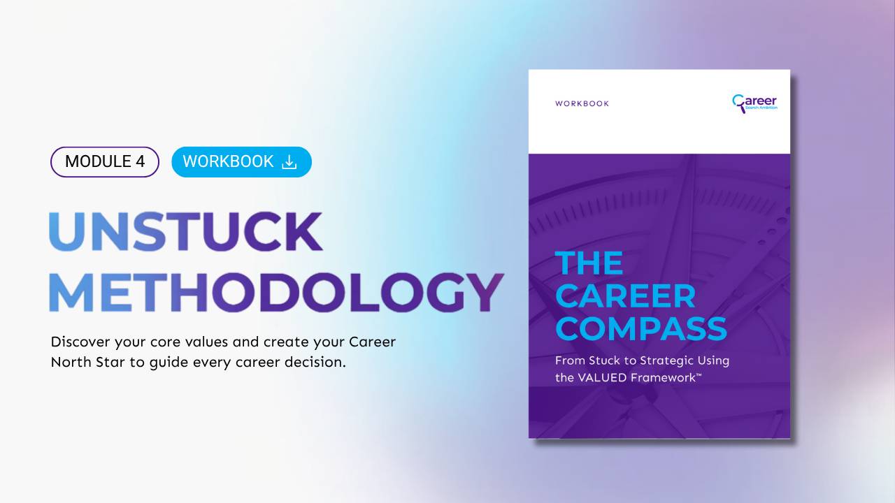 Built on The VALUED Framework™ – the proven system that helps mid-career professionals design strategic career moves without starting from zero.