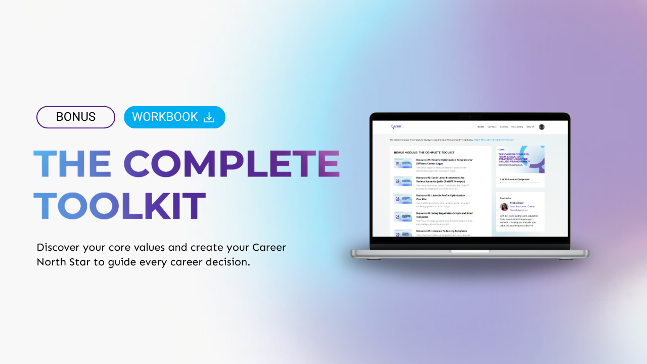 - Career Decision Matrix™ to evaluate offers beyond just salary